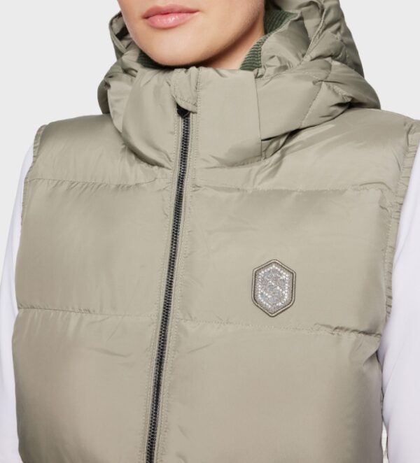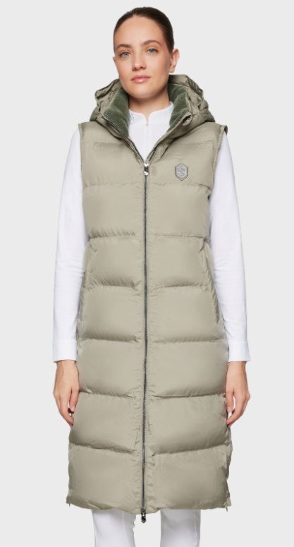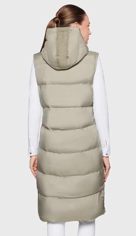 – Sleeveless knee-length design, detachable hood, full zip closure