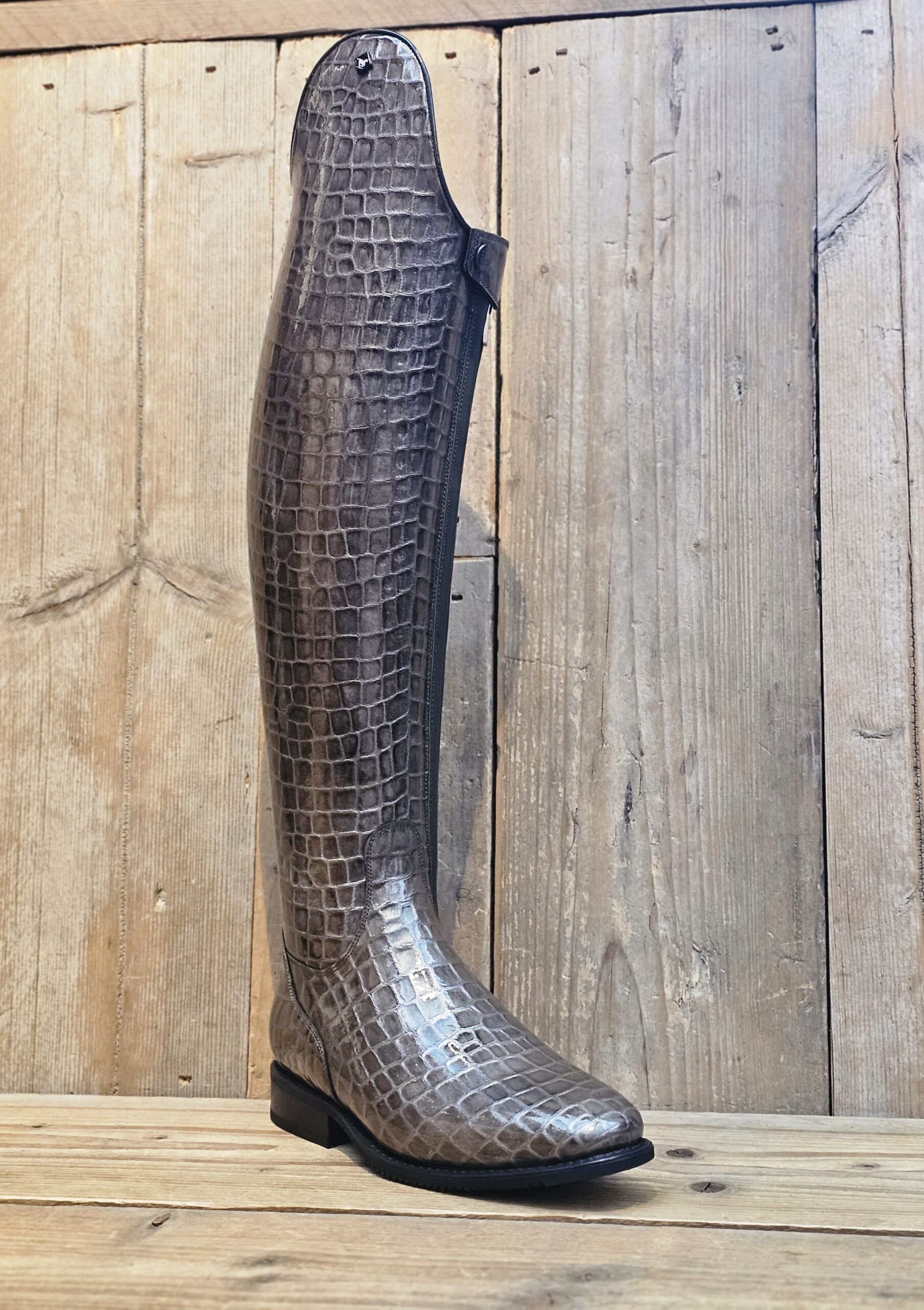 Geïnspireerd door de tijdloze aantrekkingskracht van krokodillenleer, is dit premium leer verrijkt met subtiele tonale schakeringen die diepte en dimensie toevoegen.