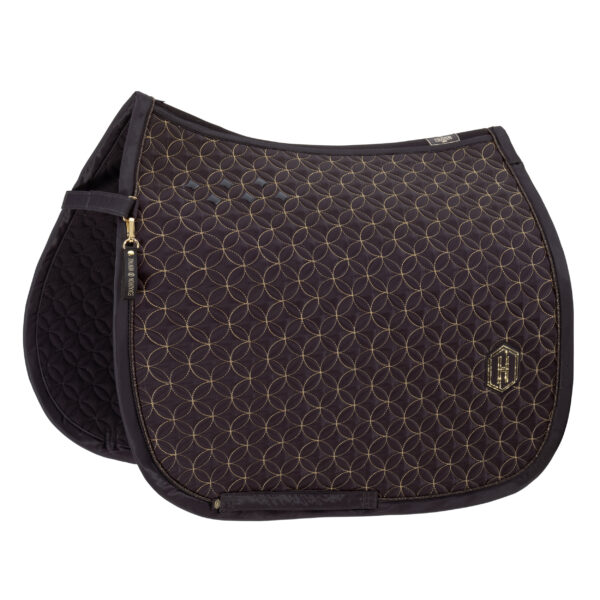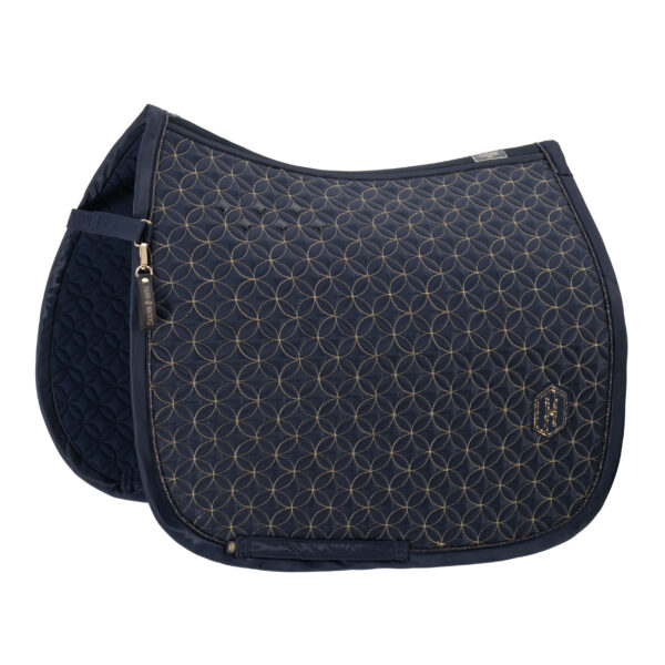 Stijlvol Eskadron zadeldekje met een hoogglanzende bovenzijde en ademende Cool-Dry binnenkant voor optimaal comfort en vochtregulatie. De contraststepping zorgt voor een moderne uitstraling, terwijl anti-slip siliconen vlakken in het zadelgebied voor extra stabiliteit zorgen.