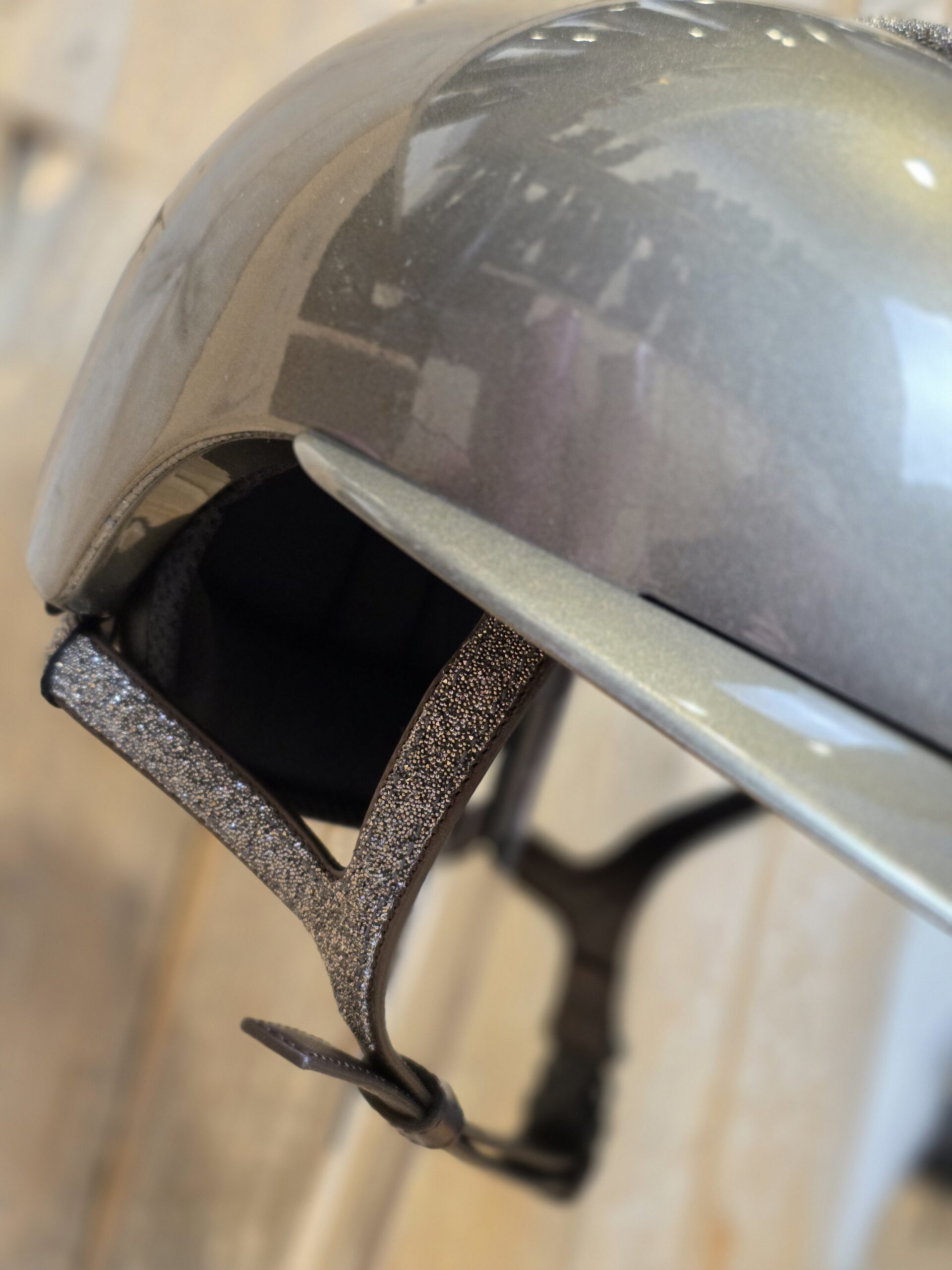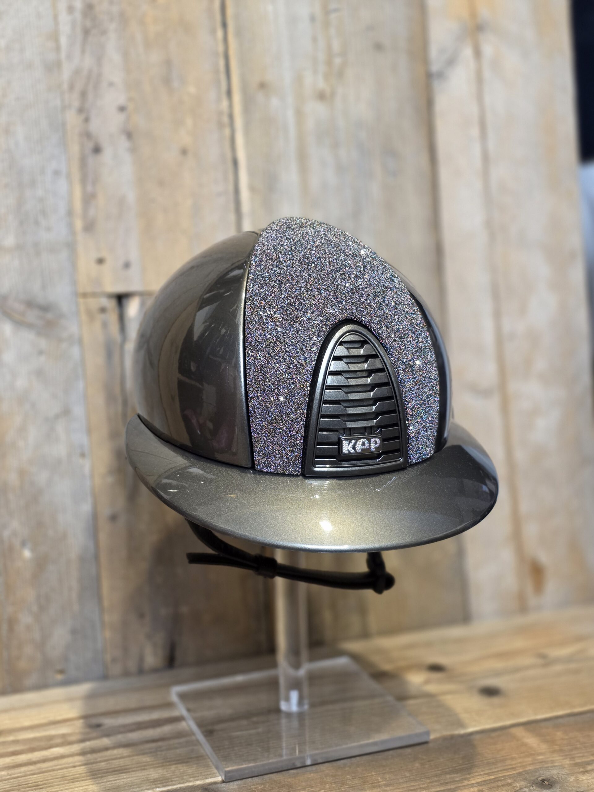 KEP Italiä Cromo 2.0 Metal Green Olive Polo visor NEW Vanity Gold Swarovski front panel chinstrap brown leather Gold Swarovski Crystal logo Shell M